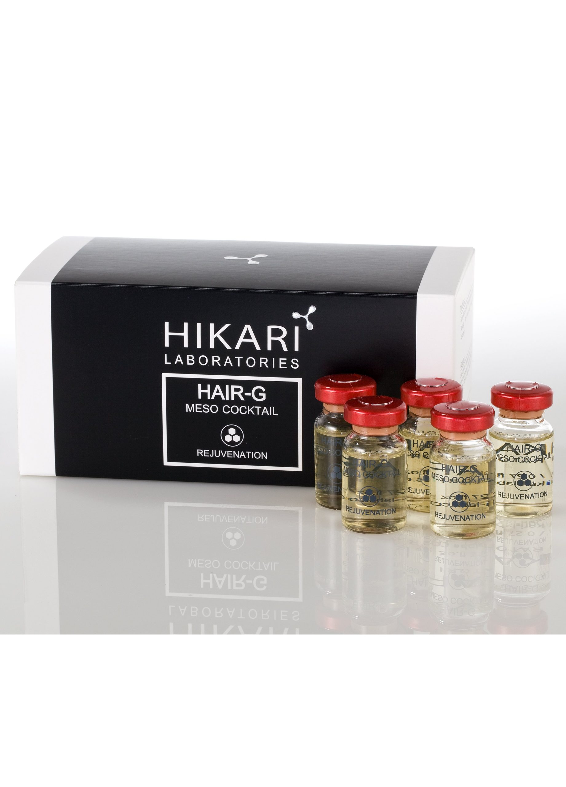 HAIR-G Meso-Cocktail – profesionalus kokteilis, skirtas plaukų folikulų aktyvinimui ir plaukų slinkimo mažinimui. Veikliosios medžiagos skatina plaukų augimą, stiprina šaknis ir gerina galvos odos mikroaplinką. Procedūrų kursas atkuria plaukų tankį ir pagerina jų kokybę.