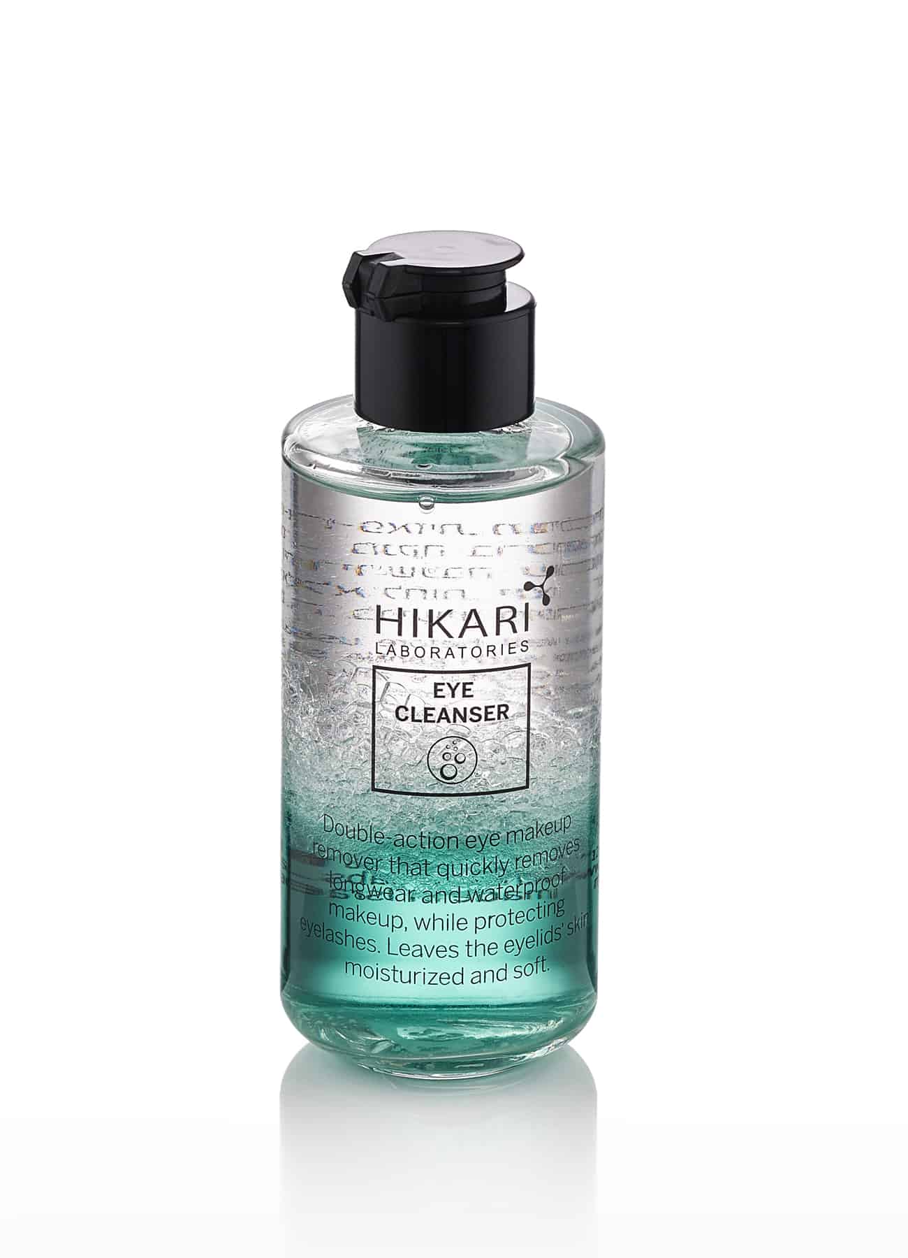 EYE CLEANSER – dvifazė formulė, kuri vos per kelias sekundes ištirpdo net atspariausią makiažą. Švelniai valo akių sritį, drėkina, minkština ir glotnina vokų odą, padeda išvengti blakstienų slinkimo. Tinka jautrioms akims ir kontaktinių lęšių nešiotojoms, suteikia gaivos ir komforto pojūtį.