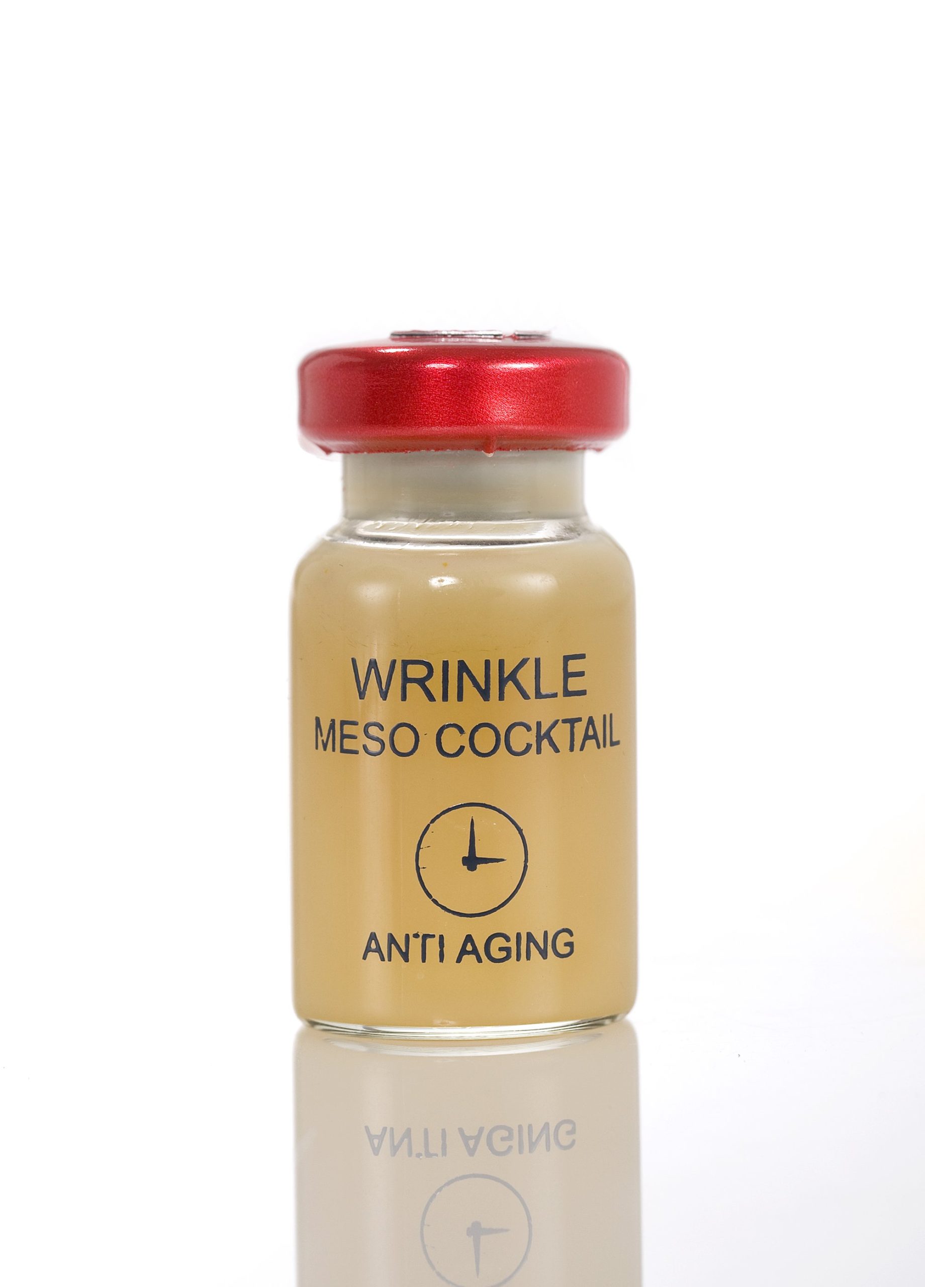WRINKLE Meso-Cocktail – stipriai veikiantis kokteilis, skirtas brandžiai ir pavargusiai odai, kuriai reikia intensyvaus atsinaujinimo. Peptidai, antioksidantai ir odos atkūrimą skatinančios medžiagos padeda mažinti raukšles, gerina tonusą, skatina ląstelių regeneraciją. Po procedūrų oda tampa lygesnė, skaistesnė ir vizualiai atjaunėjusi.
